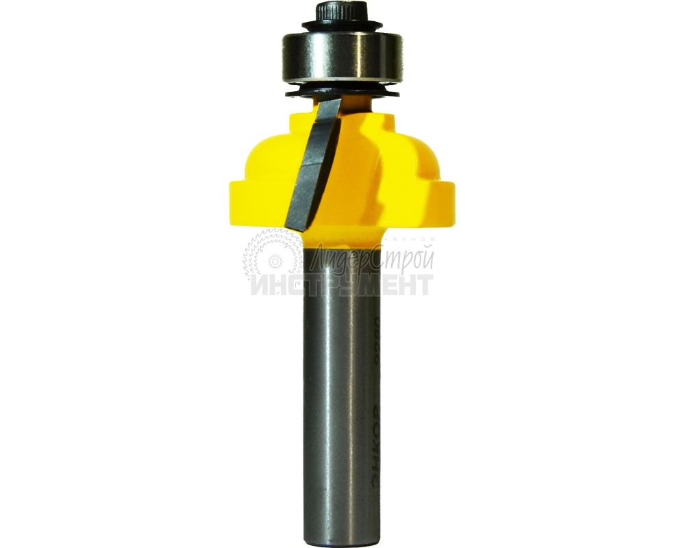 Фреза оснащена упорным подшипником, что позволяет обрабатывать не только прямолинейную, но и криволенейную кромку изделия.
