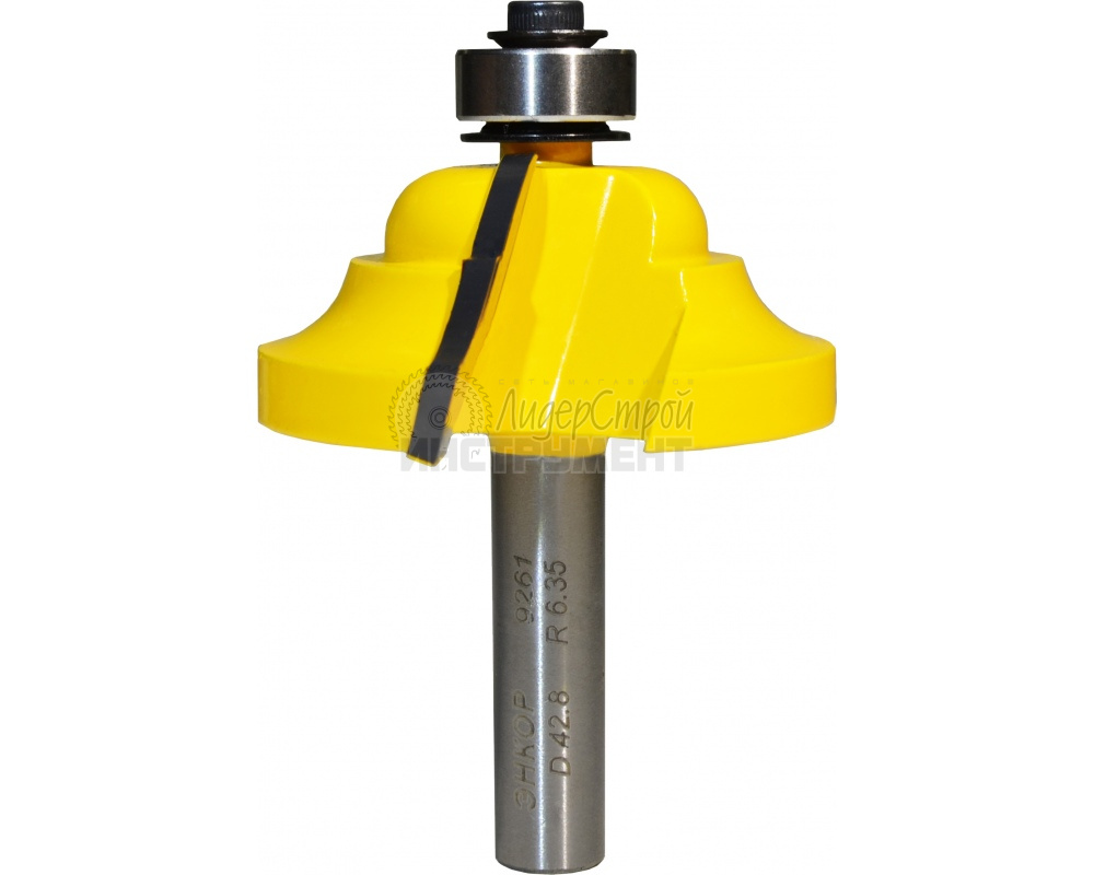 Упорный подшипник дает возможность использовать калевочные фрезы как прямолинейным , так и по криволинейным кромкам деталей без дополнительного оборудования.