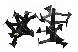 Главная особенность «гусиных лапок» - треугольная форма концов ножей, обеспечивающая достаточное крошение и перемешивание почвы. Такая сплошная конфигурация обусловлена необходимостью прочности при работе на твердом грунте, целины, ее культивирования. Подходит для работы с участками земли с крупными комьями.