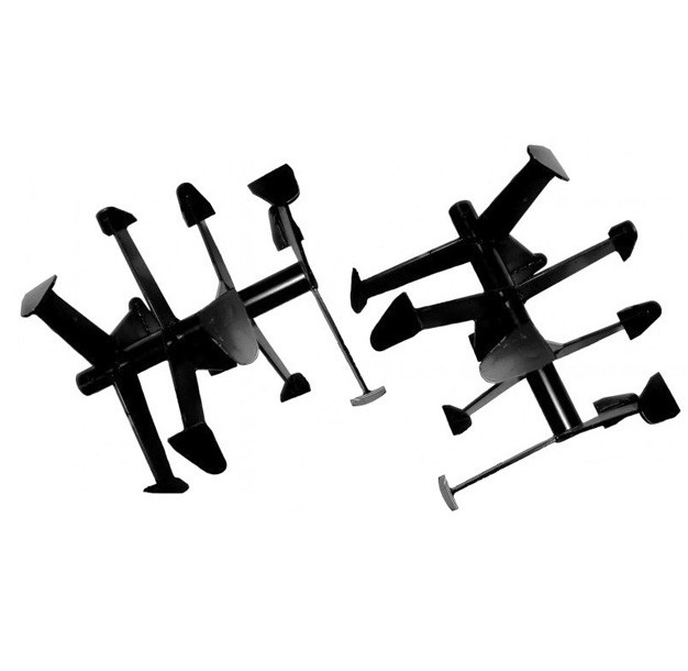 Главная особенность «гусиных лапок» - треугольная форма концов ножей, обеспечивающая достаточное крошение и перемешивание почвы. Такая сплошная конфигурация обусловлена необходимостью прочности при работе на твердом грунте, целины, ее культивирования. Подходит для работы с участками земли с крупными комьями.
