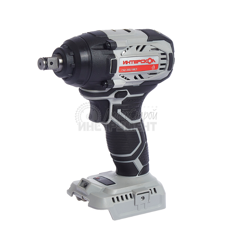 Для защиты от скольжения в руках при работе в перчатках рукоятка гайковерта имеет прорезиненное рельефное покрытие.