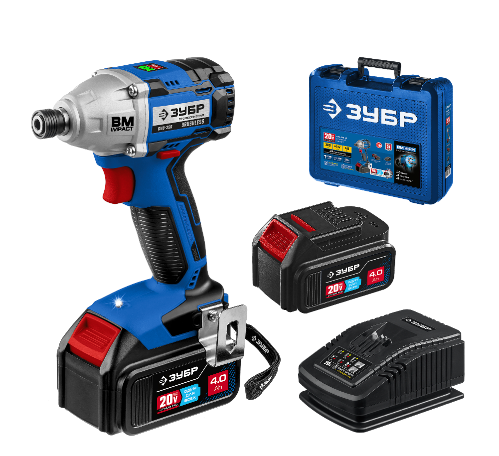 Винтоверт ударный аккумуляторный ЗУБР Профи GVB-250-42 2х4Ah GVB-250-42 купить по цене 17 190 руб - интернет-магазин ЛидерСтройИнструмент