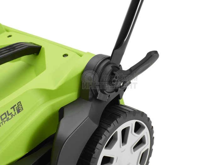 Эта модель моментально готова к работе нажатием одной кнопки. Благодаря питанию от 40V аккумулятора газонокосилка обеспечивает долгую автономную работу. Данный аккумулятор совместим с другими устройствами из линейки G-MAX 40V. Для безопасной работы газонокосилка оснащена ключом безопасности.