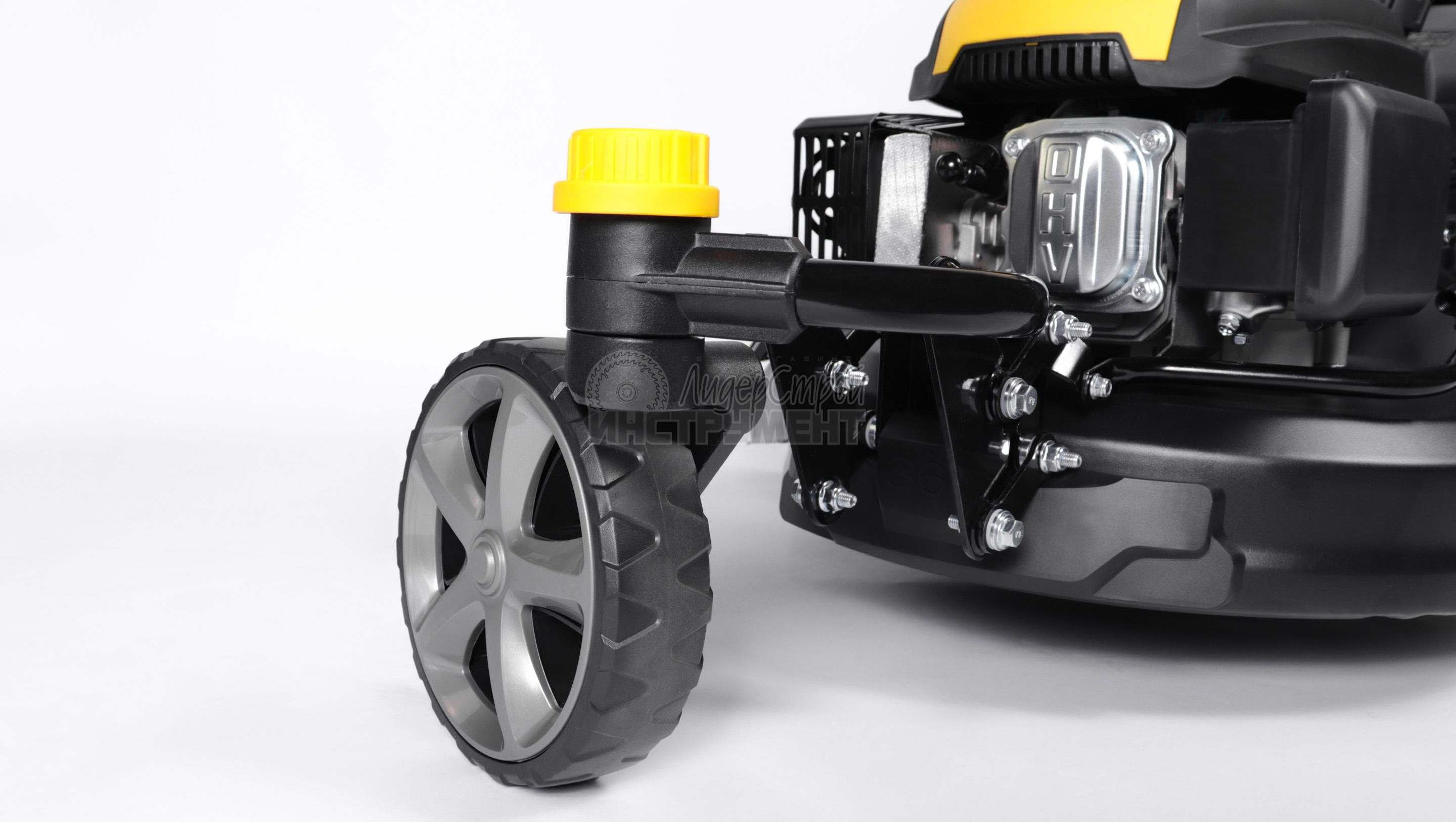 Особенностью этой модели является возможность легкого маневрирования благодаря разблокируемым передним колесам. Это особенно полезно при работе на участках с препятствиями или при необходимости часто менять направление.