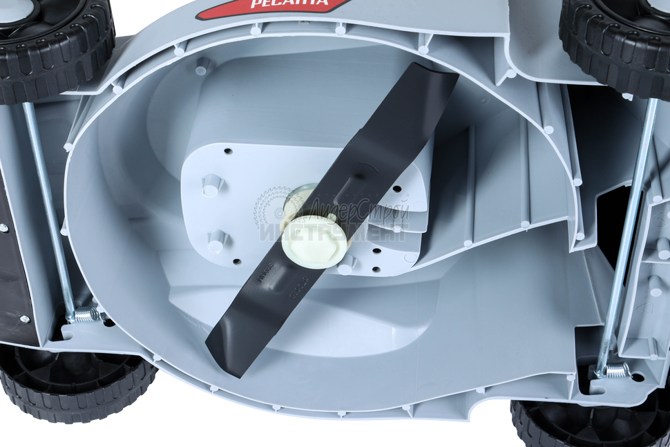 • Металлическая дека (корпус) у большинства моделей. Такая дека менее подвержена повреждениям от ударов камней или других предметов, которые могут оказаться в траве.