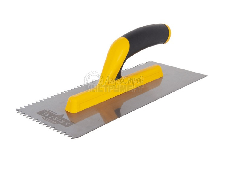 Гребёнки KRISTAL с V-зубом предназначены для равномерного нанесения и распределения клеевого раствора на поверхность во время отделочных работ. Ручка выполнена из высокопрочного пластика с прорезиненной рукояткой, что обеспечивает надежный захват. Такой вид гребенки отлично подойдет для работы с очень жидкими смесями. Также его можно использовать в том случае, если необходимо нанести слой не больше 5 мм. Благодаря своей форме, данный вид инструмента идеально распределяет жидкую смесь по поверхности.