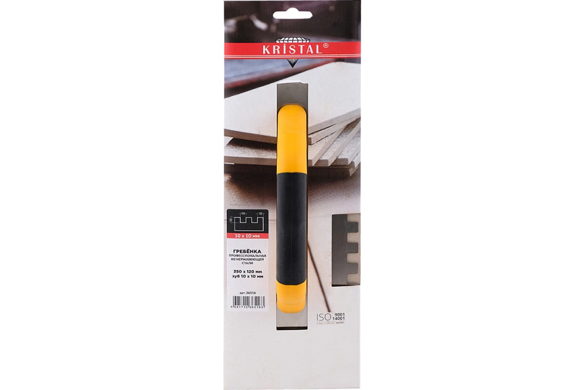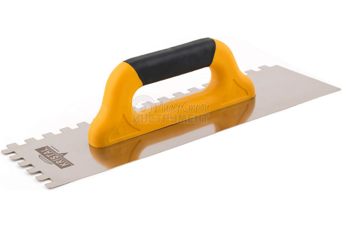 Гребёнки KRISTAL из нержавеющей стали с квадратным зубом предназначены для равномерного нанесения и распределения клеевого раствора на поверхность во время отделочных работ. Ручка выполнена из высокопрочного пластика с прорезиненной рукояткой. Рукоятка закрытого типа, что обеспечивает более надежный захват. Зубчатый шпатель для обычной керамической и кафельной плитки подбирается исходя из размера плитки, основания, среды эксплуатации. Чем больше размер плитки, тем крупнее должен быть зуб гребенки: 10х10 мм - гребенка используется для монтажа толстых тяжелых плиток (до 10 мм толщиной).