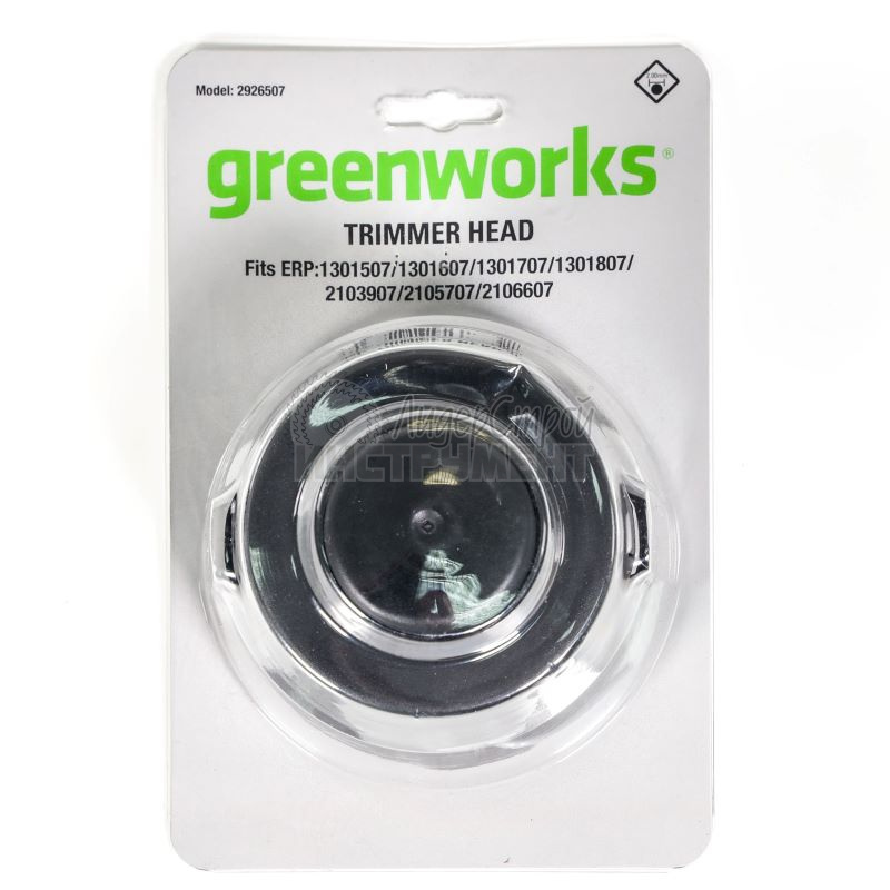 Головка триммерная в сборе с леской толщиной 2 мм. Шпуля ударная (при ударе о землю леска удлинняется) Режущая головка для триммера в сборе. Подходит для триммеров Greenworks с ударными шпулями. Диаметр лески 2 мм. Совместимость: 1301807, 1301507, 2105707, 2103207