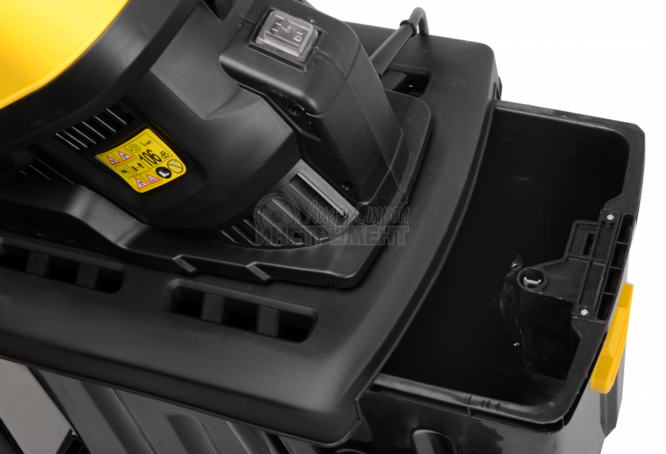 Вместительный бак для переработанного сырья не требует частой выгрузки. При отсоединении бака двигатель блокируется.