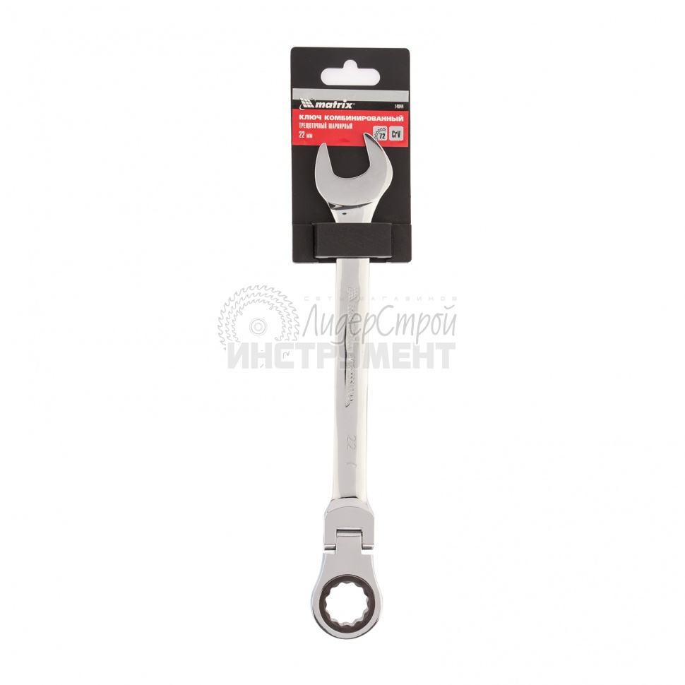 Ключ гаечный комбинированный с трещоткой и шарниром предназначен для эффективного откручивания или закручивания болтовых соединений в труднодоступных местах. Наличие шарнира позволяет менять угол наклона ключа относительно его рабочей накидной части (0–180 градусов).