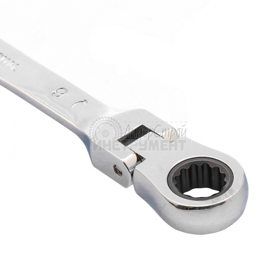 Ключ гаечный комбинированный с трещоткой и шарниром предназначен для эффективного откручивания или закручивания болтовых соединений в труднодоступных местах. Наличие шарнира позволяет менять угол наклона ключа относительно его рабочей накидной части (0–180 градусов).