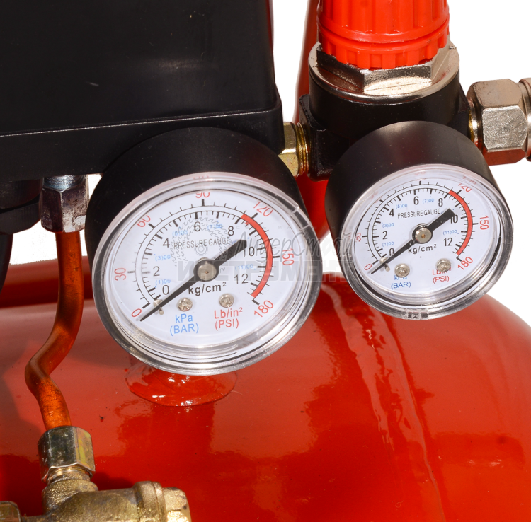 - Точный манометр позволяет контролировать давление.