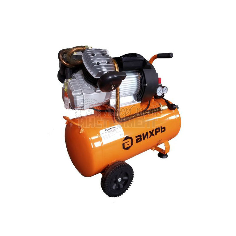 Компрессор ВИХРЬ КМП-400/50 - новинка 2019 года. Позволяет нагнетать сжатый воздух в пневмооборудование и пневмоинструменты. Вихрь КМП-400/50 используется для выполнения механических работ широкого плана. Компрессор имеет высокую мощность 2500 Вт, благодаря которой на выходе получается давление 8 бар - это весьма хорошие показатели для современных компрессоров. Производительность модели ВИХРЬ КМП-400/50 составляет 400 л/мин, при объеме ресивера 50 л. Имеются специальные ножки с резиновыми накладками для лучшей устойчивости. Удобная транспортировка компрессора достигается за счёт 2-х колес, идущих в комплекте.