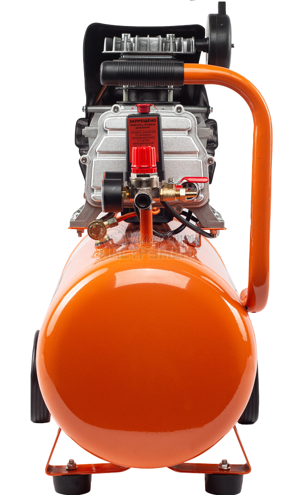 Опоры и амортизаторы уменьшают вибрацию и обеспечивают устойчивое положение на горизонтальной поверхности. Благодаря ручке и транспортировочным колёсам компрессор сохраняет мобильность.
