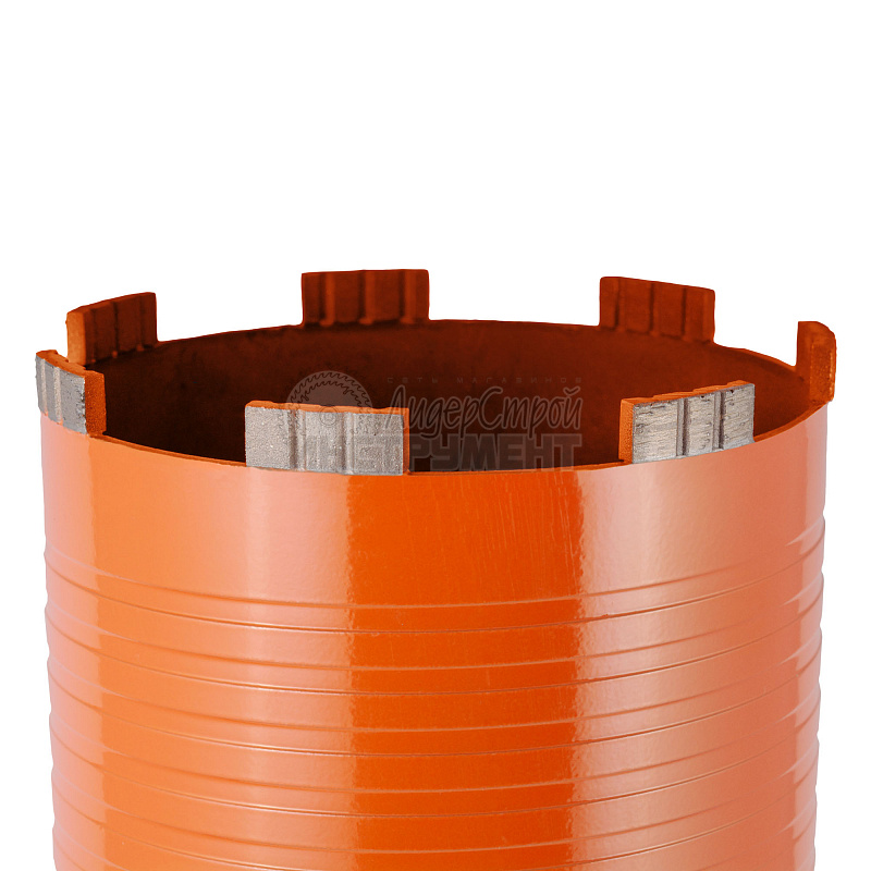 Алмазные коронки с лазерной сваркой сегмента и турбо-сегментами предназначены для сверления армированного бетона, бетона, строительных блоков с водяным охлаждением. За счет специального состава и формы сегментов коронки имеют высокую производительность работ с глубиной сверления до 400 мм.