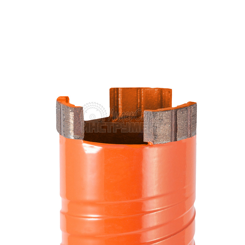 Алмазные сверла с лазерной сваркой сегментов для сухого сверления армированного бетона, бетона, строительных блоков, кирпича, пенобетона. Сверла имеют стандартную рабочую длину 450 мм, крепление -резьба М22, на корпусе нанесена спиральная выточка для более легкого сверления и дополнительного отвода пыли при сверлении, турбо сегмент высотой 10 мм обеспечивает быстрое сверление твердых материалов. Лазерная сварка сегментов обеспечивает высокую надежность коронки во время эксплуатации и минимизирует возможность отрыва сегмента во время сверления. Сверла имеют хорошее соотношение ресурса и цены. Сухое сверление следует производить с использованием системы пылеудаления и строительного пылесоса. Возможно использовать сверла для сверления с подачей воды, при этом ресурс может сократиться до 50%.
