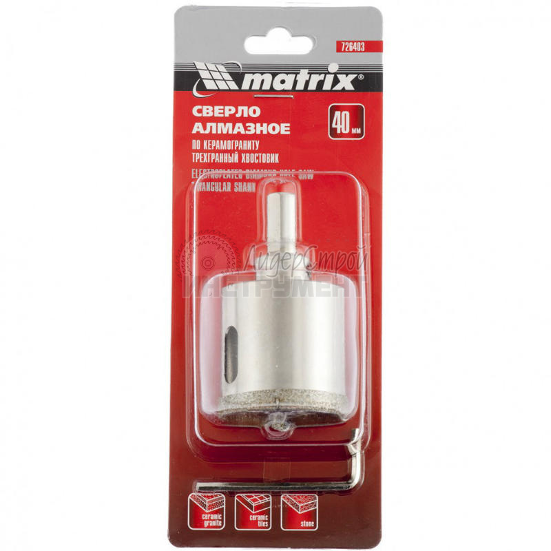 Коронка Matrix (артикул – 72852) используется с шестигранным хвостовиком для работ по керамике и другим материалам с подобными свойствами.