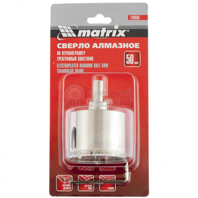 Коронка Matrix (артикул – 72852) используется с шестигранным хвостовиком для работ по керамике и другим материалам с подобными свойствами.