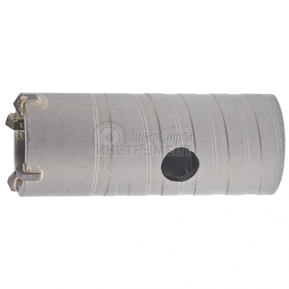 Твердосплавные зубья из сплава марки ВК8. Корпус коронки изготовлен из углеродистой стали. Хвостовик SDS-PLUS. Резьбовое крепление коронки к хвостовику. На внешней стороне коронки нарезана спиральная канавка для улучшения вывода продуктов сверления и снижения нагрузки на перфоратор.