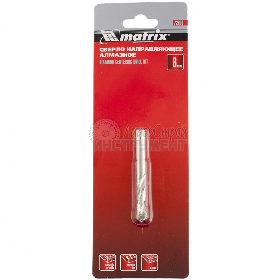 Направляющее алмазное сверло Matrix 72600, 6 мм, — это запасное направляющее сверло для кольцевых алмазных сверл (коронок) ТМ Matrix начиная с d16-120мм, инструмент для сверления отверстий в керамике, плитке и стекле при рекомендованной скорости 350-700 об/мин. Благодаря алмазному напылению оно также подходит для работы с керамогранитом. Для продления срока службы инструмента рекомендуется использовать водяное охлаждение, а также снимать центрирующее сверло после просверливания отверстий глубиной 1-2 мм.