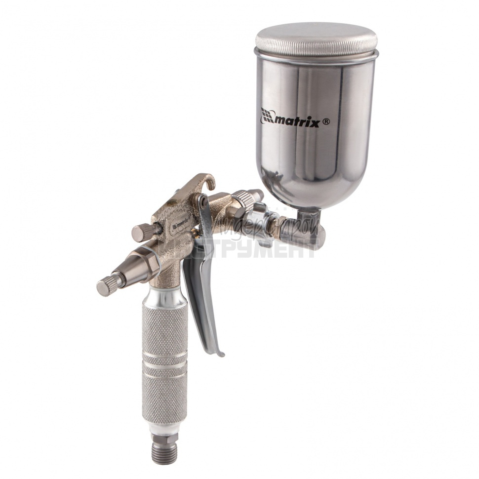 Надежный и качественный краскораспылитель MATRIX (артикул 57316) используется для финишной покраски заготовок и деталей. Компактное устройство можно использовать в труднодоступных местах. Для работы модель необходимо подсоединить к компрессору с подачей сжатого воздуха.