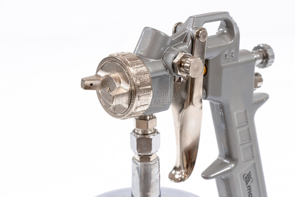 Красящий пистолет выполнен из прочного металлического сплава. Не подвержен ржавлению. Легко ухаживать и чистить.