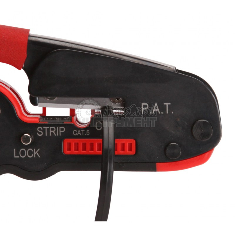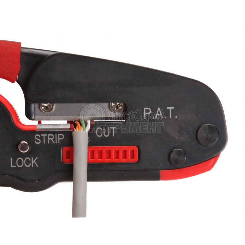 • инструмент выполняет также резку и зачистку от изоляции и оболочки кабелей типа UTP, STP и с телефонных проводов.