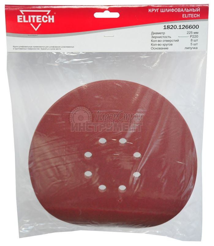Круг шлифовальный на липучке перфорированный 225мм P220 5шт ELITECH 200003 (отзывы)