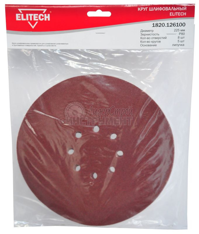 Круг шлифовальный на липучке перфорированный 225мм P80 5шт ELITECH 199998 (отзывы)
