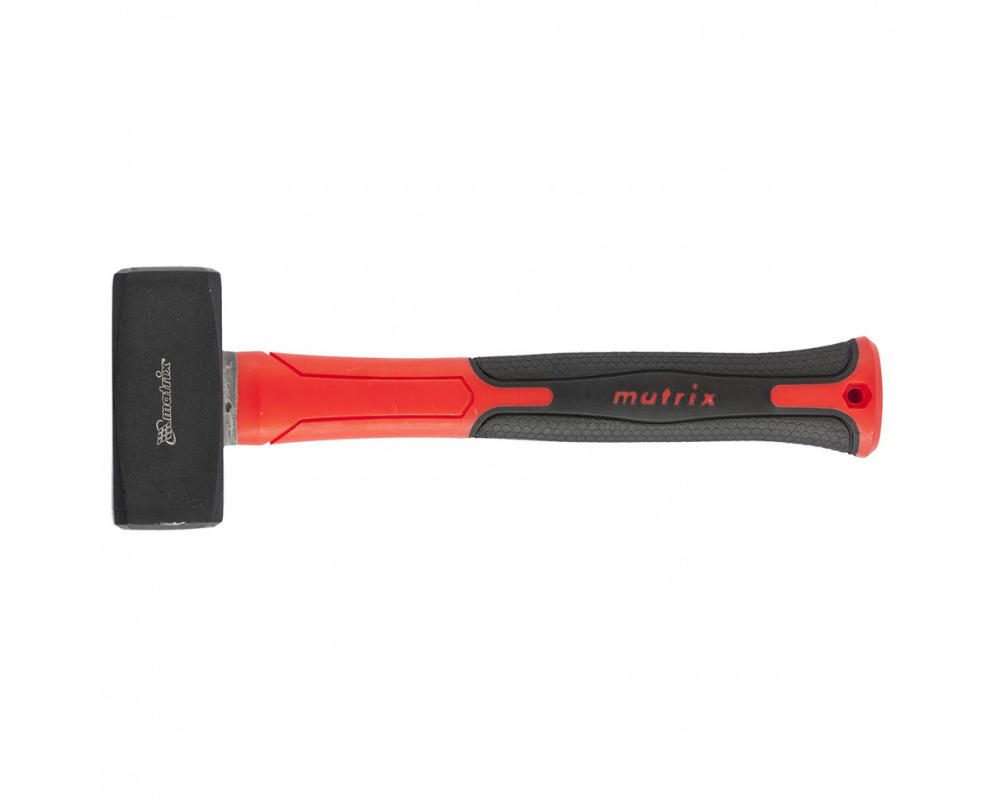 Головка кувалды кованая, покрыта черным лаком, изготовлена из стали 50. Бойку придана селективная закалка, обеспечивающая особую твердость и прочность (52 HRc). Боек слегка выпуклый и отшлифован с обеих сторон. Фибергласовая рукоятка амортизирует отдачу при ударе. Резиновое покрытие препятствует скольжению в руке и обеспечивает удобный и надежный захват.