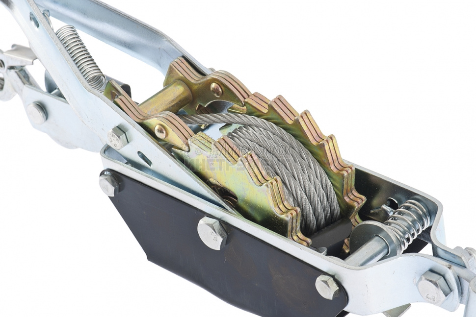 Прочный стальной трос и мощный крюк выдерживают высокие нагрузки.