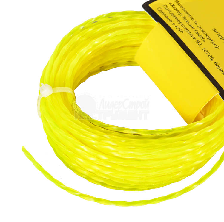 Леска HUTER TS2015 для триммеров с сечение в форме витого квадрата, диаметр 2 мм, длина 15 м.