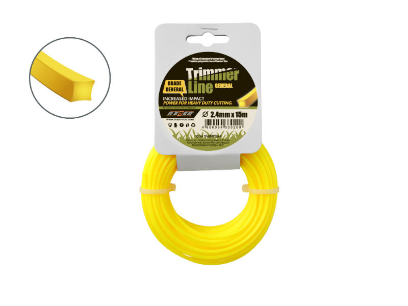 Леска триммерная (квадрат) ф2,4мм 15м General REZER Триммерная леска используется для скашивания травы с помощью мотокос. Артикул 03.007.00046.