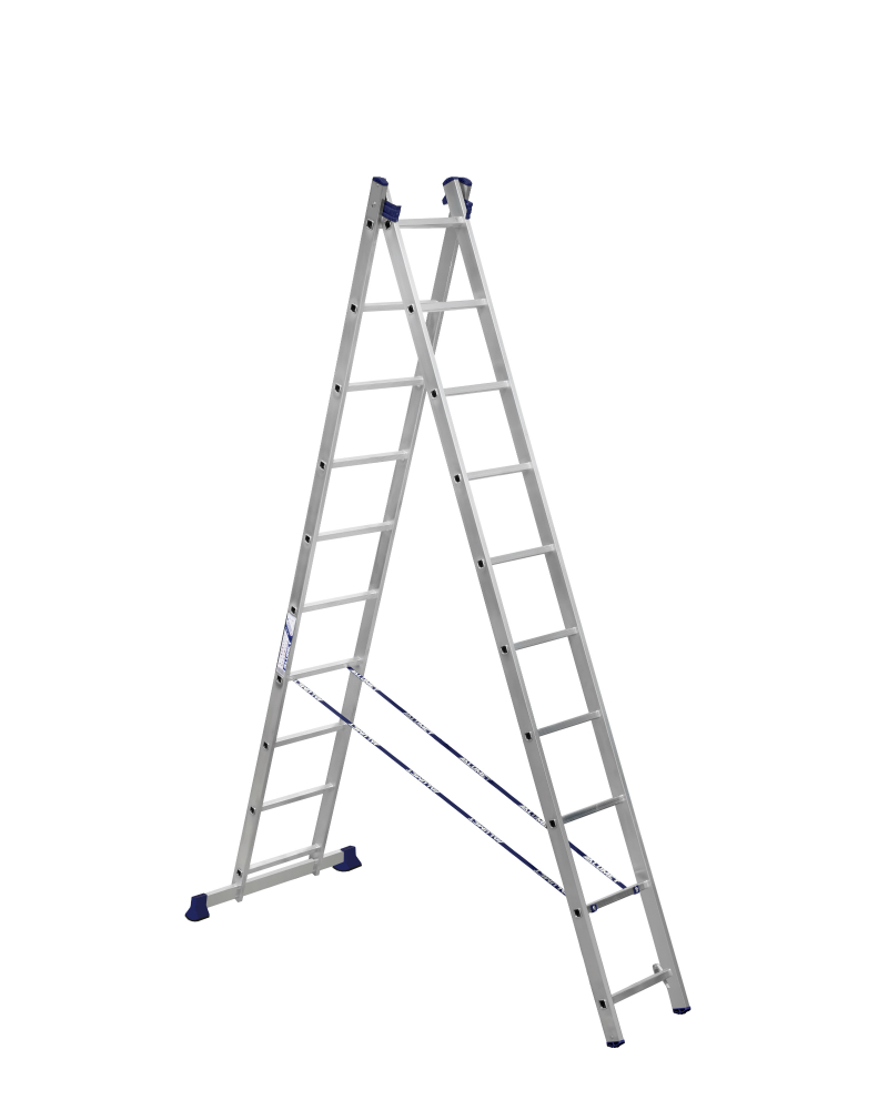 • благодаря металлической планке на нижней опоре обеспечивается стабильное положение лестницы. Все опоры покрыты полимерными накладками, лестница не проскальзывает вдоль опорной поверхности.
