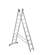 Благодаря трасформируемой конструкции принимает несколько положений: обычная лестница, стремянка, помост и Г-образное положение, подходящее для рельефных поверхностей.