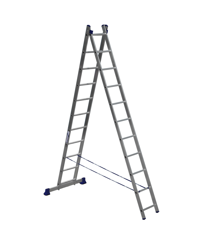 • благодаря металлической планке на нижней опоре обеспечивается стабильное положение лестницы. Все опоры покрыты полимерными накладками, лестница не проскальзывает вдоль опорной поверхности.