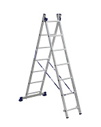 Благодаря трасформируемой конструкции принимает несколько положений: обычная лестница, стремянка, помост и Г-образное положение, подходящее для рельефных поверхностей.