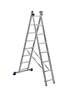 Благодаря трасформируемой конструкции принимает несколько положений: обычная лестница, стремянка, помост и Г-образное положение, подходящее для рельефных поверхностей.