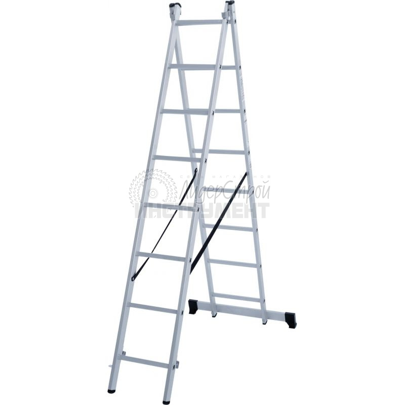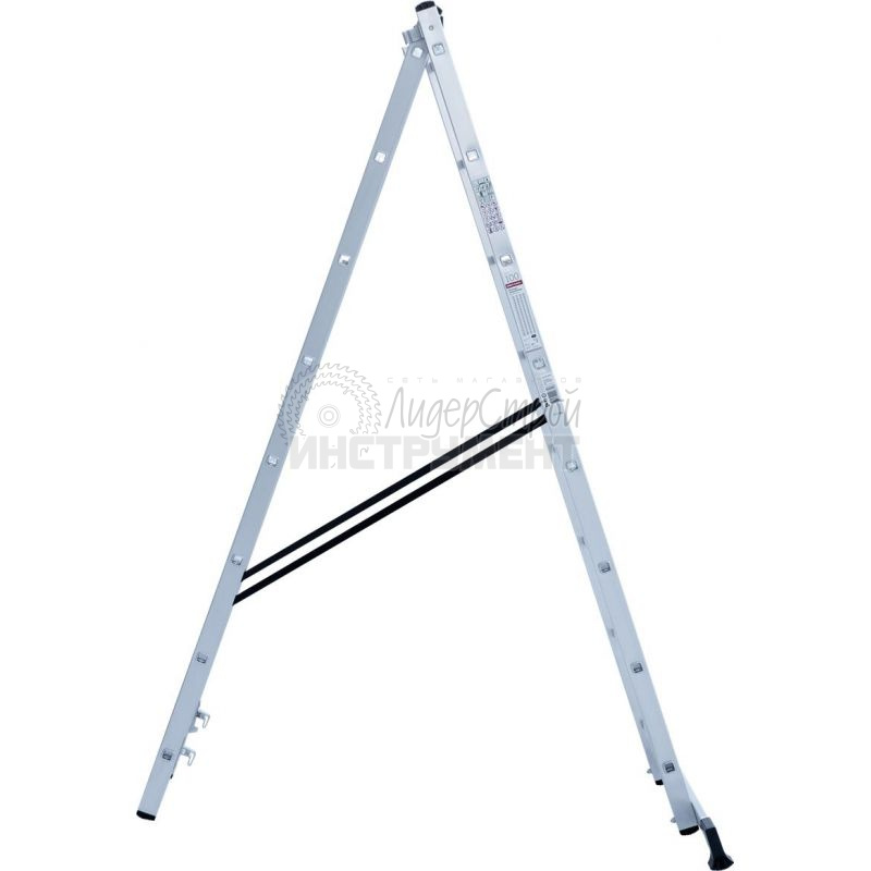 Благодаря разборной конструкции используется как стремянка, помост и как обычная лестница.