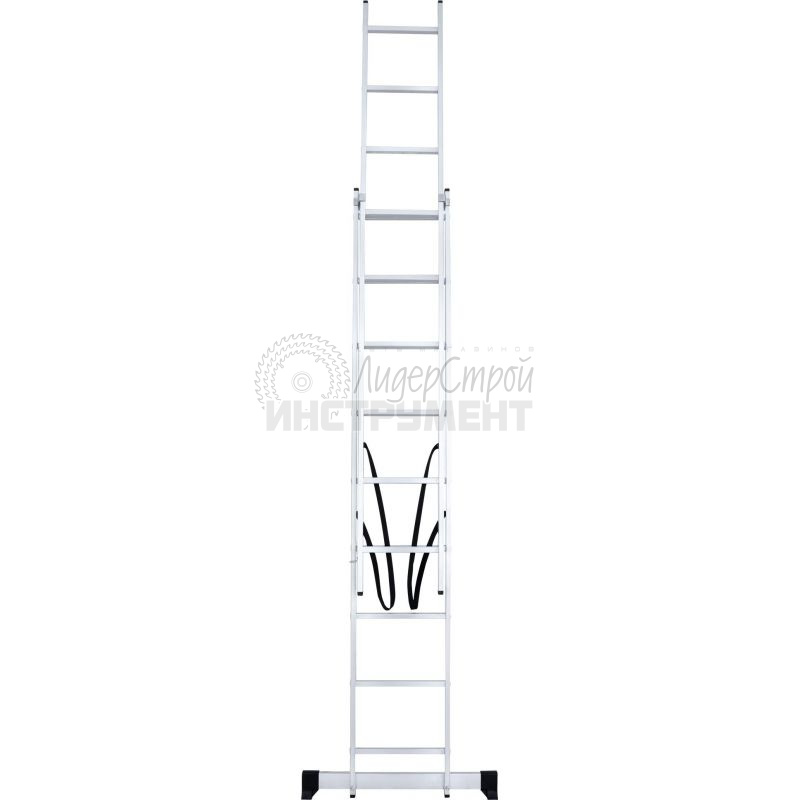 АЛЮМЕТ H3 5312 – трехсекционная модель-трансформер. Может использоваться как стремянка и прикладная лестница. Несмотря на большую рабочую высоту отличается компактными размерами. Материал изготовления – прочный профиль из алюминиевого сплава. При использовании на улице не ржавеет и не окисляется.