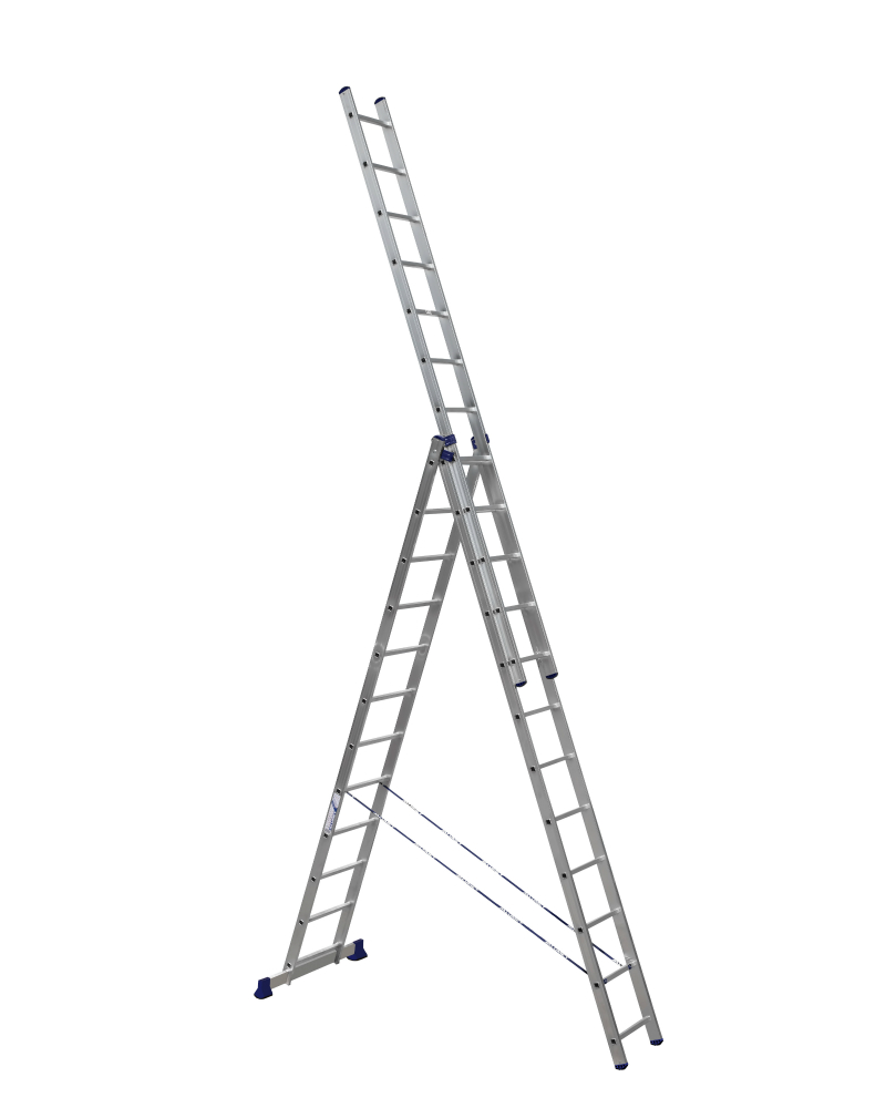АЛЮМЕТ H3 5309 – трехсекционная модель-трансформер. Может использоваться как стремянка и прикладная лестница. Несмотря на большую рабочую высоту отличается компактными размерами. Материал изготовления – прочный профиль из алюминиевого сплава. При использовании на улице не ржавеет и не окисляется.
