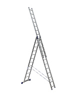АЛЮМЕТ H3 5310 – трехсекционная модель-трансформер. Может использоваться как стремянка и прикладная лестница. Несмотря на большую рабочую высоту отличается компактными размерами. Материал изготовления – прочный профиль из алюминиевого сплава. При использовании на улице не ржавеет и не окисляется.