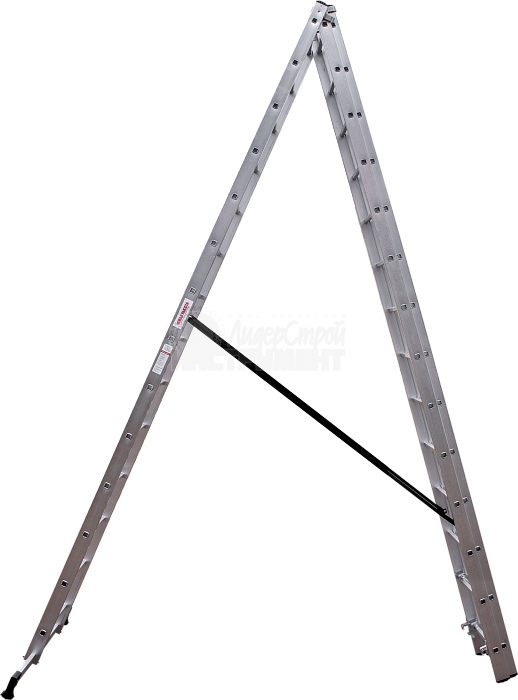Благодаря трасформируемой конструкции принимает несколько положений: обычная лестница, стремянка, помост и Г-образное положение, подходящее для рельефных поверхностей.