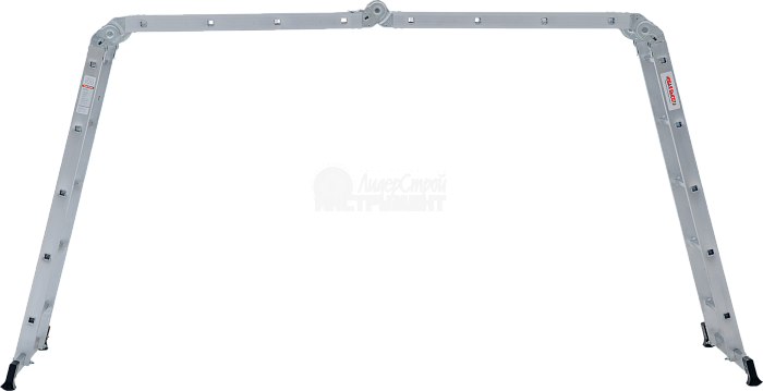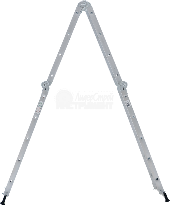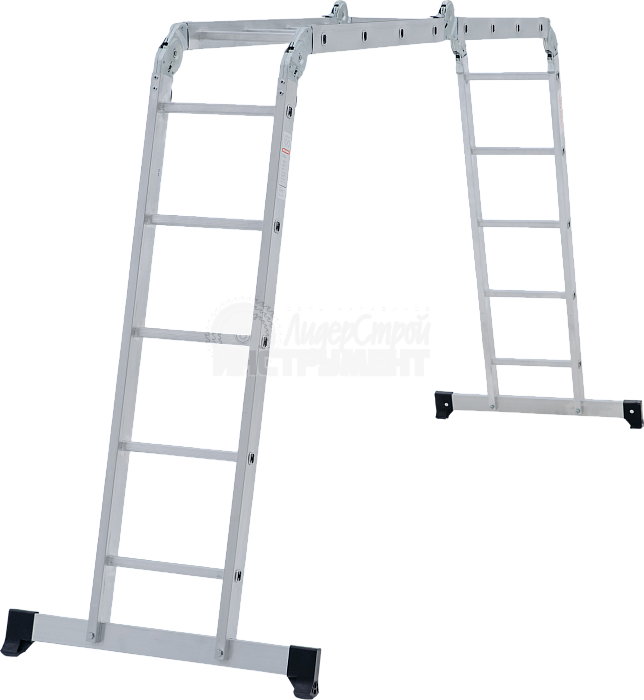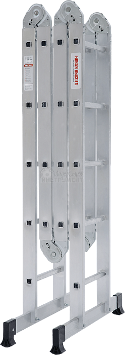 Благодаря трасформируемой конструкции принимает несколько положений: обычная лестница, стремянка, помост и Г-образное положение, подходящее для рельефных поверхностей.