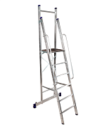 Благодаря трасформируемой конструкции принимает несколько положений: обычная лестница, стремянка, помост и Г-образное положение, подходящее для рельефных поверхностей.