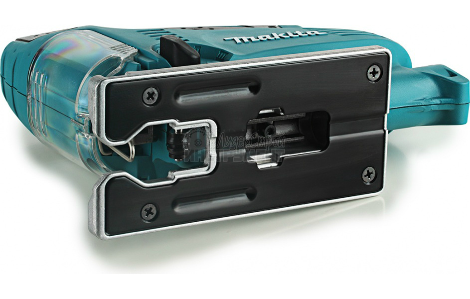 Подошва лобзика имеет наклонный механизм для работы под углом до 45 градусов. Подошва выполнена из штампованного металла.
