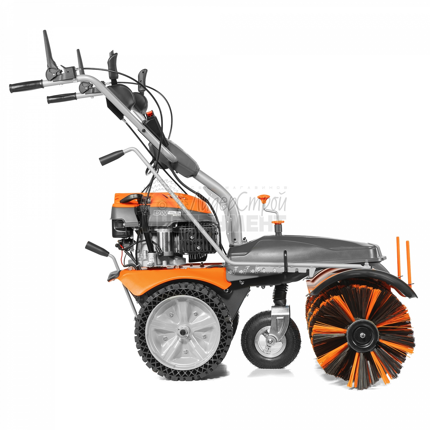 Угол поворота щетки может регулироваться в нескольких положениях, поэтому можно настроить машину под любой ландшафт.
