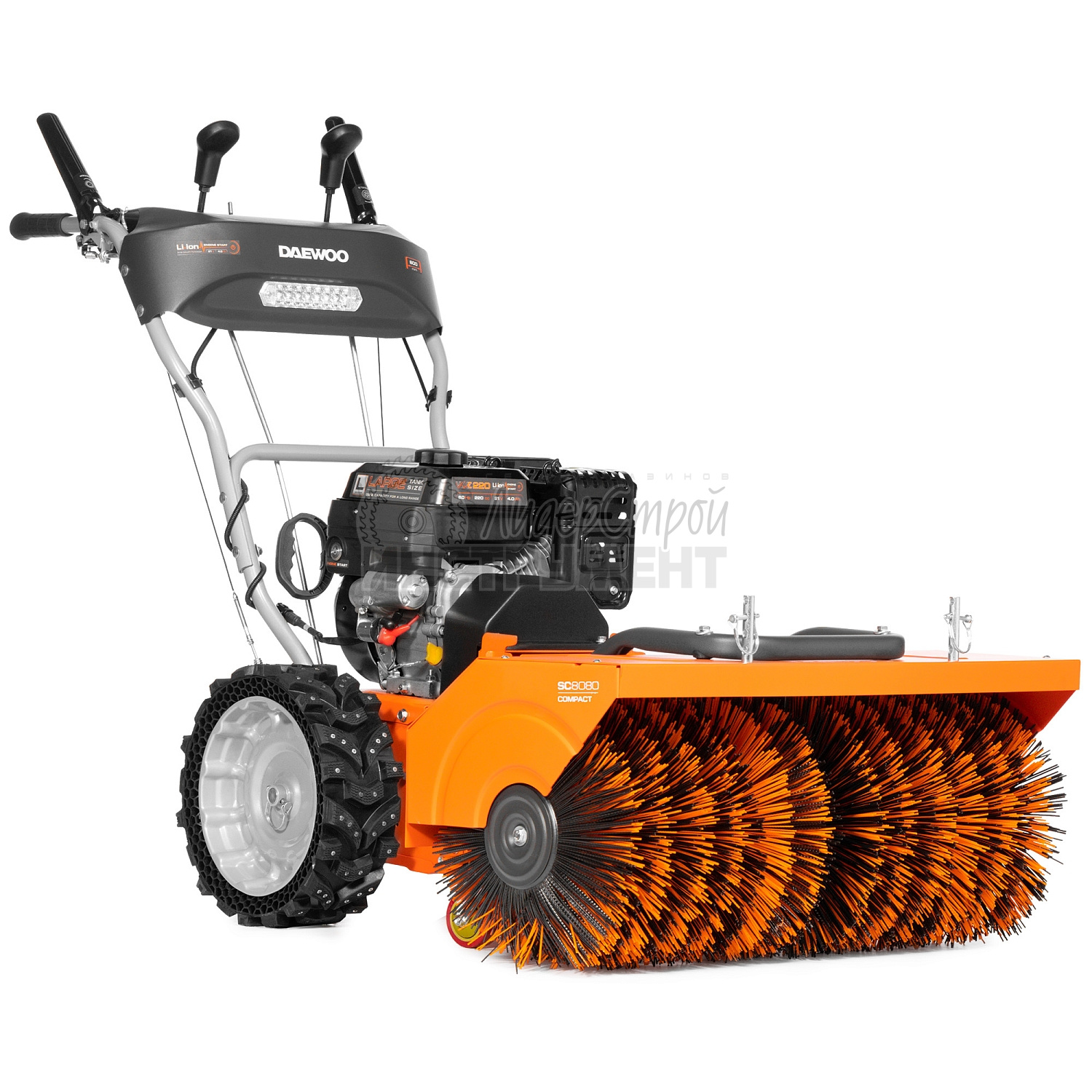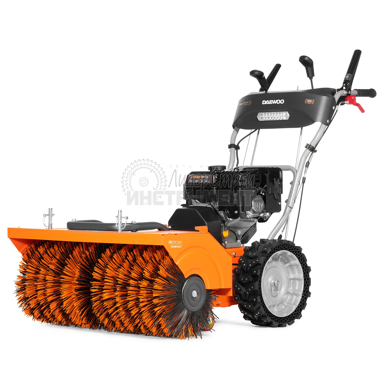 Машина подметальная бензиновая Daewoo SC 8080 идеально подходит для уборки территории от опавших листьев, снега и другого мусора. Широкие безвоздушные шины EX‑ICE WHEELS второго поколения обладают улучшенными тяговыми и сцепными характеристики. Сотовая структура и ребра жесткости. Новый дизайн протектора с ламелями для лучшего отвода снега и воды. 10 рядов металлических шипов для надежного сцепления на обледенелой поверхности. Система обеспечивает выбор скоростей: из 6 скоростей вперед и 2 скоростей назад, в зависимости от высоты снежного покрова. Простая и одновременно надежная система перемещения фрикционного диска для изменения скорости. Одновременное нажатие обеих рукояток приводит к их взаимной блокировке. Это позволяет освободить правую руку для выбора скорости движения щетки или угла наклона, не останавливая уборку.
