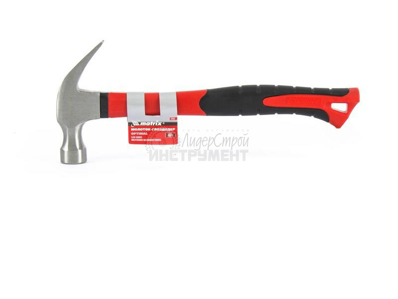 Цельнометаллический молоток-гвоздодёр из инструментальной стали, кованый, с точно выдержанным режимом термообработки. Рабочая часть бойка закалена и доведена до твёрдости 55 HRc. Обрезиненная двухкомпонентная рукоятка обеспечивает удобный и надёжный захват. Вылет бойка исключен.