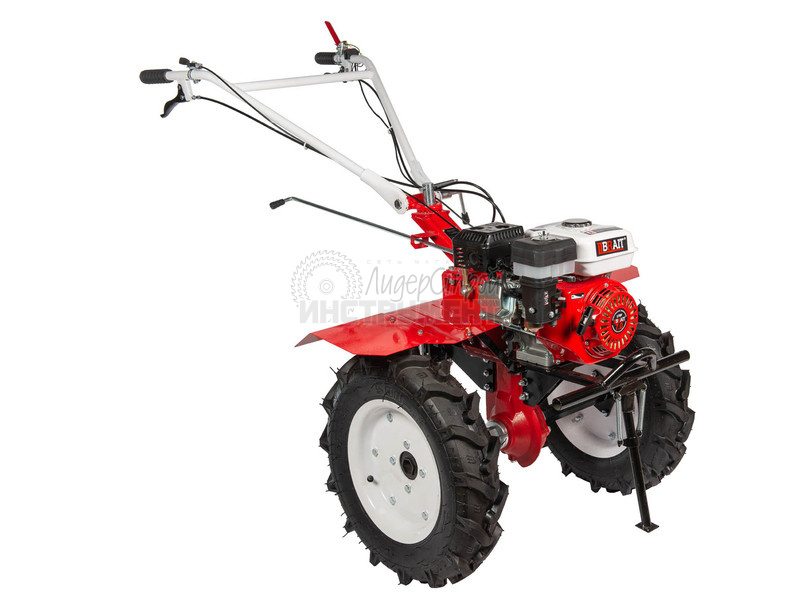 Мотоблок BRAIT-135GBPRO предназначен для обработки больших участков земли. Мощность двигателя даёт возможность применять в работе широкий спектр навесного оборудования. Агрегат имеет вал отбора мощности. Мотоблок можно дополнить роторной сенокосилкой, мотопомпой, снегоуборочной приставкой и другим оборудованием. Двигатель этого агрегата имеет мощность 9.0 лошадиных сил, произведён по спецификации знаменитого завода LIFAN. Топливный бак объёмом 6.5 литров и экономичный расход топлива, дают возможность долгое время работать без дозаправки. Высококачественная коробка передач имеет 3 скорости вперёд и 1 назад. Аппарат оснащён мощным, цельнолитым чугунным редуктором, созданным специально для эксплуатации в жёстких условиях на тяжёлых грунтах и для обработки целины. Зубчатая передача, которая сообщает крутящий момент двигателя колёсам и фрезам, отличается надёжностью и долговечностью. Сцепка мотоблока изготовлена с большим запасом прочности и позволяет работать не только с сошником, плугом или окучником, но и с телегой. Мотоблок адаптирован с навесным оборудованием КАСКАД/ЦЕЛИНА. Ширину обработки при работе с фрезами можно регулировать от 800 мм. до 1200 мм., кроме этого агрегат массой в 150 кг. способен работать плугом без дополнительного утяжеления. Шестигранные оси мотоблока (посадка 32мм.) обеспечивают надёжное соединение.